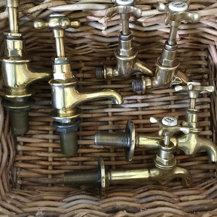 モダンな水栓はよく見かけますが、この蛇口はイギリスで使われていたもので幾重にも輝きを増していくアンティークです。