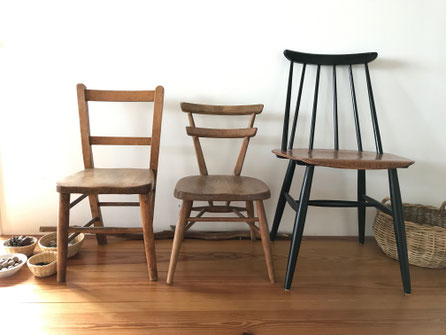 100年近く前に設立されたイギリスの ercol chair やフィンランドのイルマリ・タピオヴァーラがデザインした Fanett chair など、どちらも丸みを帯びた脚はユーモラスな印象です。サイズはコンパクトで座面も低めにできており、日本の住宅環境によく馴染みます。